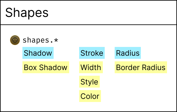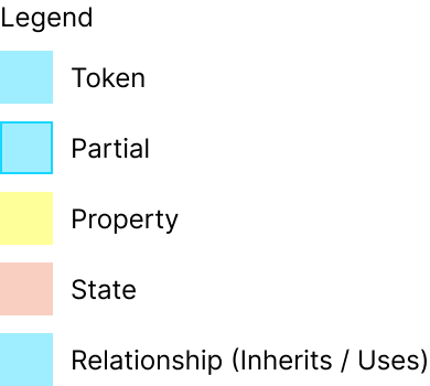 A design token with properties forms the atomic citizen in the model. They can be composed into partials that encode a certain aspect to reason about and meant to be assembled with other tokens or partials to form a particular interface element.